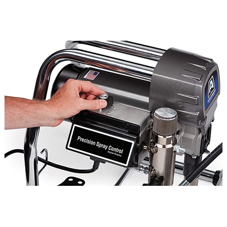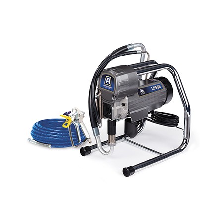 • Equipo AIRLESSCO LITTLE PRO LP555di HB de carro alto completo: con 15 mts. de manguera de alta presión, pistola Airlessco Prolight 500 con boquilla autolimpiable REV-TIP™, aceite pistón, líquido Corocheck, bolsa de tamizar.